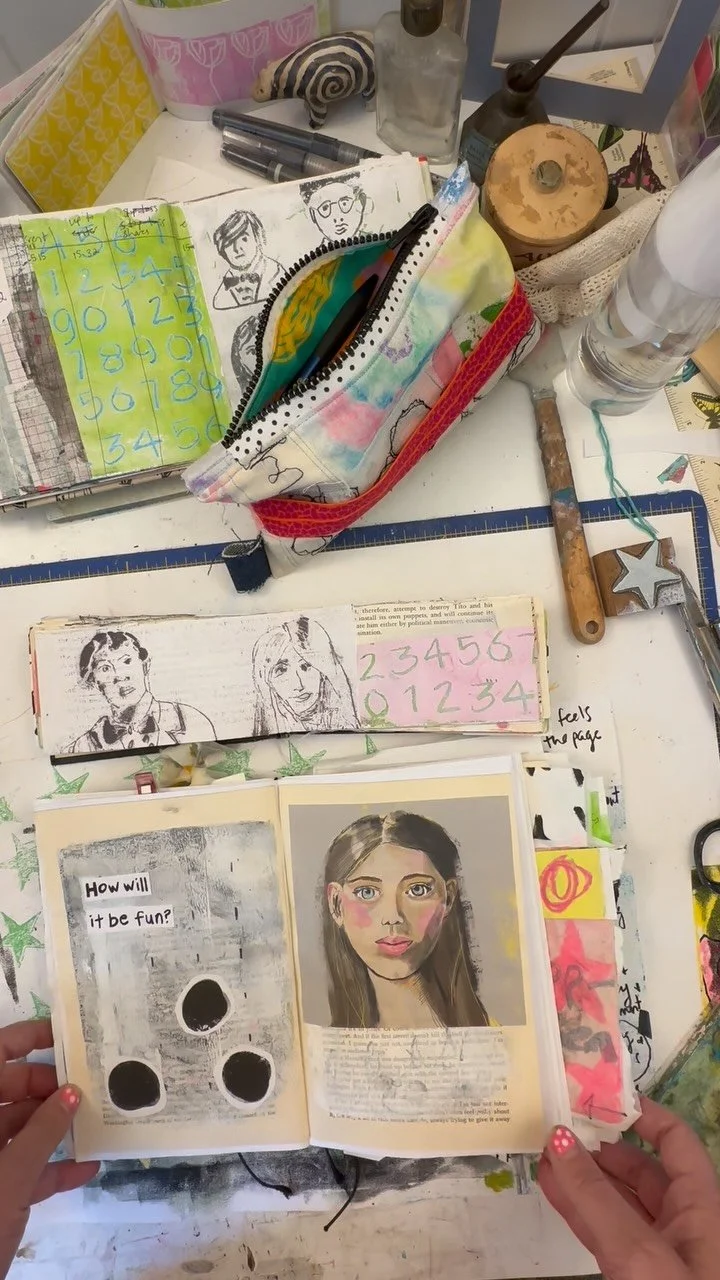 It’s sure to involve mark making and art journaling, writing + poetry; drawing, stitching and going at it with gelli plates. Collage, oodles of collage, so get your gluesticks and gel medium ready for some good creative fun. Sign up below to find out what’s happening next!